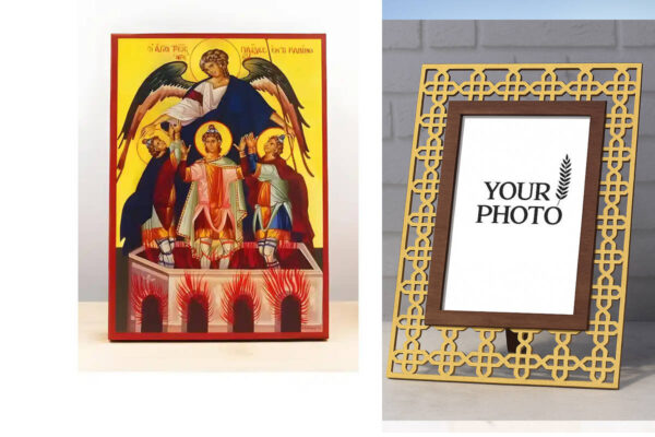 Εικόνα Ορθοδοξίας Πολυτελείας με σχεδιο Σταυρούς μαζι με Βάση σε 8 χρώματα με περίγραμμα χρυσό σε ξύλο Plywood (Πλακάζ) με βάση The Three Childrens in Camino “Abdenago, Shadrach and Misach”, Ξύλινη Χειροποίητη Εικόνα Ελληνικού Premium Βυζαντινού Στυλ Κρεμασμένη σε Πλάκα Χειροποίητη Ελληνορθόδοξη εικόνα του Ιησού Χριστού, Κρεμαστή πλάκα βυζαντινής τέχνης, χριστιανική τέχνη Διάσταση 15×11 cm (5,9 x 4,3 ίντσες) INTRAEK3kadro3211-610927