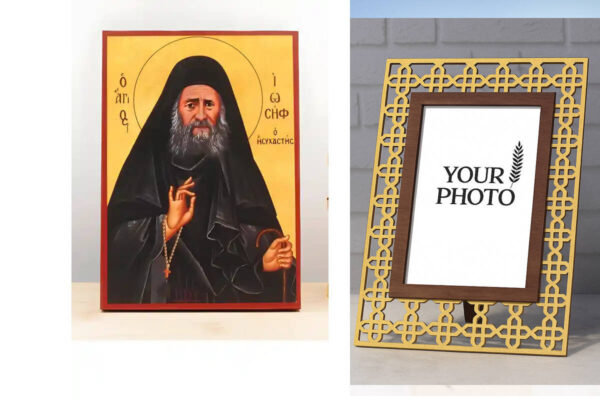 Εικόνα Ορθοδοξίας Πολυτελείας με σχεδιο Σταυρούς μαζι με Βάση σε 8 χρώματα με περίγραμμα χρυσό σε ξύλο Plywood (Πλακάζ) με βάση Άγιος Ιωσήφ ο Ησυχαστής, Ξύλινη Χειροποίητη Εικόνα Ελληνικού Βυζαντινού Στυλ Κρεμασμένη σε ξύλινη πλάκα Χειροποίητη Ελληνορθόδοξη εικόνα του Ιησού Χριστού, Κρεμαστή πλάκα βυζαντινής τέχνης, χριστιανική τέχνη Διάσταση 15×11 cm (5,9 x 4,3 ίντσες) INTRAEK3kadro3211-610908