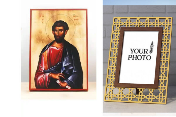 Εικόνα Ορθοδοξίας Πολυτελείας με σχεδιο Σταυρούς μαζι με Βάση σε 8 χρώματα με περίγραμμα χρυσό σε ξύλο Plywood (Πλακάζ) με βάση Άγιος Απόστολος Ιάκωβος ο Μέγας γιος του Ζεβεδαίου, Ξύλινη Χειροποίητη Εικόνα Ελληνικής Κορυφαίας Βυζαντινής Στυλ Κρεμαστή σε ξύλινη πλάκα Θρησκευτικό θέμα Χειροποίητη Ελληνορθόδοξη εικόνα του Ιησού Χριστού, Κρεμαστή πλάκα βυζαντινής τέχνης, χριστιανική τέχνη Διάσταση 15×11 cm (5,9 x 4,3 ίντσες) INTRAEK3kadro3211-610889