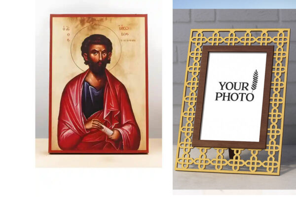 Εικόνα Ορθοδοξίας Πολυτελείας με σχεδιο Σταυρούς μαζι με Βάση σε 8 χρώματα με περίγραμμα χρυσό σε ξύλο Plywood (Πλακάζ) με βάση Άγιος Απόστολος Ιάκωβος ο μικρότερος γιος του Αλφαίου, Ξύλινη Χειροποίητη Εικόνα Ελληνικού Βυζαντινού Στυλ Κρεμαστή σε ξύλινη πλάκα Θρησκευτικό θέμα Χειροποίητη Ελληνορθόδοξη εικόνα του Ιησού Χριστού, Κρεμαστή πλάκα βυζαντινής τέχνης, χριστιανική τέχνη Διάσταση 15×11 cm (5,9 x 4,3 ίντσες) INTRAEK3kadro3211-610888