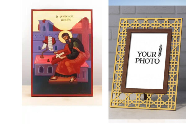 Εικόνα Ορθοδοξίας Πολυτελείας με σχεδιο Σταυρούς μαζι με Βάση σε 8 χρώματα με περίγραμμα χρυσό σε ξύλο Plywood (Πλακάζ) με βάση Άγιος Απόστολος Ματθαίος ο Ευαγγελιστής Χειρόγραφο, Ξύλινη Χειροποίητη Εικόνα Ελληνικού Βυζαντινού Στυλ τοίχου Αναρτημένη σε Ξύλινη Πλάκα Θρησκευτικά Χειροποίητη Ελληνορθόδοξη εικόνα του Ιησού Χριστού, Κρεμαστή πλάκα βυζαντινής τέχνης, χριστιανική τέχνη Διάσταση 15×11 cm (5,9 x 4,3 ίντσες) INTRAEK3kadro3211-610886