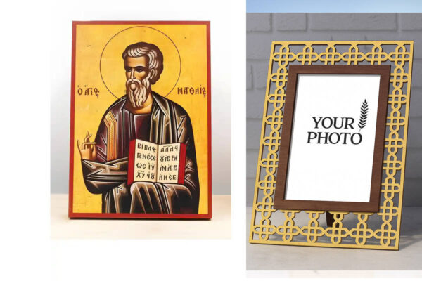 Εικόνα Ορθοδοξίας Πολυτελείας με σχεδιο Σταυρούς μαζι με Βάση σε 8 χρώματα με περίγραμμα χρυσό σε ξύλο Plywood (Πλακάζ) με βάση Άγιος Απόστολος Ματθαίος ο Ευαγγελιστής, Ξύλινη Χειροποίητη Εικόνα Ελληνικής Κορυφαίας Βυζαντινής Στυλ Κρεμαστή σε ξύλινη πλάκα Θρησκευτικό θέμα Χειροποίητη Ελληνορθόδοξη εικόνα του Ιησού Χριστού, Κρεμαστή πλάκα βυζαντινής τέχνης, χριστιανική τέχνη Διάσταση 15×11 cm (5,9 x 4,3 ίντσες) INTRAEK3kadro3211-610884