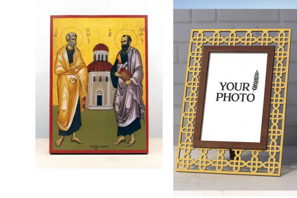 Εικόνα Ορθοδοξίας Πολυτελείας με σχεδιο Σταυρούς μαζι με Βάση σε 8 χρώματα με περίγραμμα χρυσό σε ξύλο Plywood (Πλακάζ) με βάση Οι Άγιοι Απόστολοι Παύλος και Πέτρος με Εκκλησία, Ξύλινη Χειροποίητη Εικόνα Ελληνικού Βυζαντινού Στυλ Κρεμασμένο σε ξύλινη πλάκα Θρησκευτικό θέμα Χειροποίητη Ελληνορθόδοξη εικόνα του Ιησού Χριστού, Κρεμαστή πλάκα βυζαντινής τέχνης, χριστιανική τέχνη Διάσταση 15×11 cm (5,9 x 4,3 ίντσες) INTRAEK3kadro3211-610878