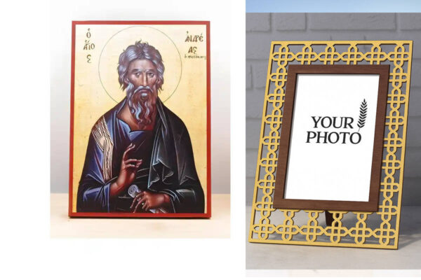 Εικόνα Ορθοδοξίας Πολυτελείας με σχεδιο Σταυρούς μαζι με Βάση σε 8 χρώματα με περίγραμμα χρυσό σε ξύλο Plywood (Πλακάζ) με βάση Άγιος Απόστολος Ανδρέας ο Πρωτόκλητος, Ξύλινη Χειροποίητη Εικόνα Ελληνικής Κορυφαίας Βυζαντινής Στυλ Κρεμαστή σε ξύλινη πλάκα Θρησκευτικό θέμα Χειροποίητη Ελληνορθόδοξη εικόνα του Ιησού Χριστού, Κρεμαστή πλάκα βυζαντινής τέχνης, χριστιανική τέχνη Διάσταση 15×11 cm (5,9 x 4,3 ίντσες) INTRAEK3kadro3211-610875