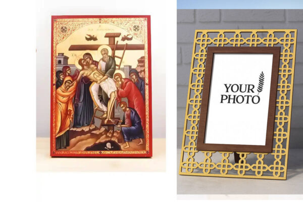 Εικόνα Ορθοδοξίας Πολυτελείας με σχεδιο Σταυρούς μαζι με Βάση σε 8 χρώματα με περίγραμμα χρυσό σε ξύλο Plywood (Πλακάζ) με βάση Ιησούς Χριστός Κάθοδος από τον Σταυρό «Πιέτα», Ξύλινη Χειροποίητη Εικόνα Ελληνικού Βυζαντινού Στυλ Κρεμαστή σε Ξύλινη Πλάκα Θρησκευτικό Θέμα Χειροποίητη Ελληνορθόδοξη εικόνα του Ιησού Χριστού, Κρεμαστή πλάκα βυζαντινής τέχνης, χριστιανική τέχνη Διάσταση 15×11 cm (5,9 x 4,3 ίντσες) INTRAEK3kadro3211-610852