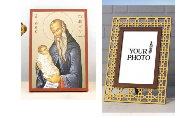 Εικόνα Ορθοδοξίας Πολυτελείας με σχεδιο Σταυρούς μαζι με Βάση σε 8 χρώματα με περίγραμμα χρυσό σε ξύλο Plywood (Πλακάζ) με βάση Άγιος Στυλιανός Παφλαγονίας, Ξύλινη Χειροποίητη Εικόνα με Ψηφιακή Εκτύπωση Ελληνικό Premium Βυζαντινού Στυλ Κρεμαστό τοίχου Θρησκευτικό Θέμα Χειροποίητη Ελληνορθόδοξη εικόνα του Ιησού Χριστού, Κρεμαστή πλάκα βυζαντινής τέχνης, χριστιανική τέχνη Διάσταση 10×7 cm (3,9 x 2,8 ίντσες) INTRAEK3kadro3211-11151