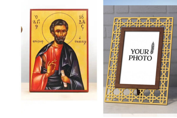 Εικόνα Ορθοδοξίας Πολυτελείας με σχεδιο Σταυρούς μαζι με Βάση σε 8 χρώματα με περίγραμμα χρυσό σε ξύλο Plywood (Πλακάζ) με βάση Άγιος Απόστολος Ιούδας Θαδδαίος, Ξύλινη Χειροποίητη Εικόνα Ελληνικού Premium Βυζαντινού Στυλ Κρεμαστή σε ξύλινη πλάκα Θρησκευτικό θέμα Χειροποίητη Ελληνορθόδοξη εικόνα του Ιησού Χριστού, Κρεμαστή πλάκα βυζαντινής τέχνης, χριστιανική τέχνη Διάσταση 15×11 cm (5,9 x 4,3 ίντσες) INTRAEK3kadro3211-610827