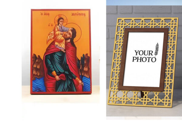 Εικόνα Ορθοδοξίας Πολυτελείας με σχεδιο Σταυρούς μαζι με Βάση σε 8 χρώματα με περίγραμμα χρυσό σε ξύλο Plywood (Πλακάζ) με βάση Άγιος Χριστόφορος που κουβαλά τον Ιησού Χριστό, Ξύλινη Χειροποίητη Εικόνα Ελληνικού Premium Βυζαντινού Στυλ Κρεμασμένο σε ξύλινη πλάκα Χειροποίητη Ελληνορθόδοξη εικόνα του Ιησού Χριστού, Κρεμαστή πλάκα βυζαντινής τέχνης, χριστιανική τέχνη Διάσταση 15×11 cm (5,9 x 4,3 ίντσες) INTRAEK3kadro3211-610822