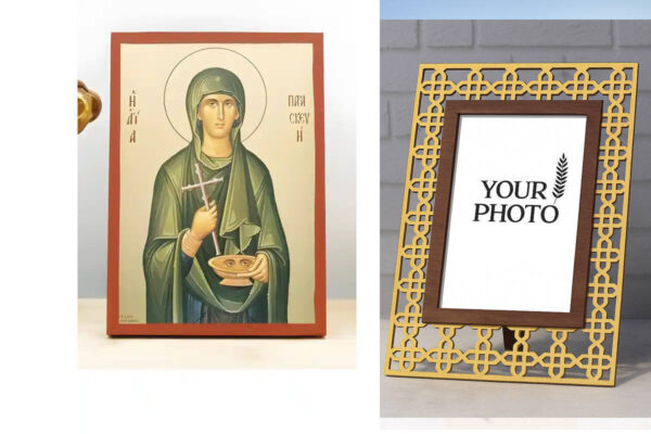 Εικόνα Ορθοδοξίας Πολυτελείας με σχεδιο Σταυρούς μαζι με Βάση σε 8 χρώματα με περίγραμμα χρυσό σε ξύλο Plywood (Πλακάζ) με βάση Αγία Παρασκευή Ρώμης, Ξύλινη Χειροποίητη Εικόνα με χρυσό φύλλο Ελληνικό Premium Βυζαντινού Στυλ Κρεμαστό τοίχου Θρησκευτικό Θέμα Χειροποίητη Ελληνορθόδοξη εικόνα του Ιησού Χριστού, Κρεμαστή πλάκα βυζαντινής τέχνης, χριστιανική τέχνη Διάσταση 10×7 cm (3,9 x 2,8 ίντσες) INTRAEK3kadro3211-11145