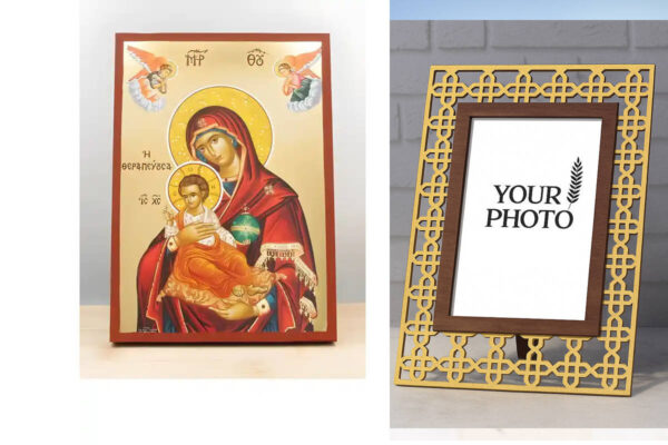 Εικόνα Ορθοδοξίας Πολυτελείας με σχεδιο Σταυρούς μαζι με Βάση σε 8 χρώματα με περίγραμμα χρυσό σε ξύλο Plywood (Πλακάζ) με βάση Παναγία η Θεραπεύτρια «Θεραπούσα» με τον Ιησού, Ξύλινη Χειροποίητη Εικόνα με Ψηφιακή Εκτύπωση Ελληνικό Βυζαντινού ύφους Premium Κρεμασμένο σε Ξυλόπλακα Χειροποίητη Ελληνορθόδοξη εικόνα του Ιησού Χριστού, Κρεμαστή πλάκα βυζαντινής τέχνης, χριστιανική τέχνη Διάσταση 10×7 cm (3,9 x 2,8 ίντσες) INTRAEK3kadro3211-11144