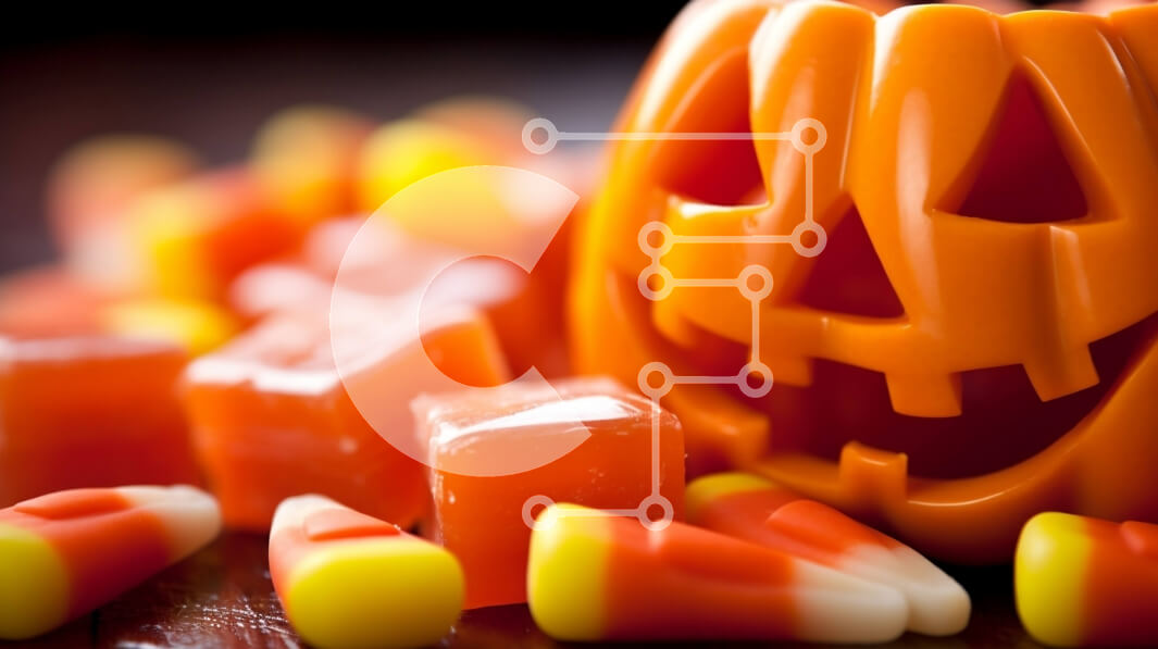 Intra Συλλεκτικό Ξύλινο Παζλ Plywood 4mm – Πορτοκαλί κολοκύθα περιτριγυρισμένη από Candy Corns και Jellybeans Σε Ξύλινο Κουτί – Διαστάσεις Puzzle: 10×10 cm – 25 κομμάτια