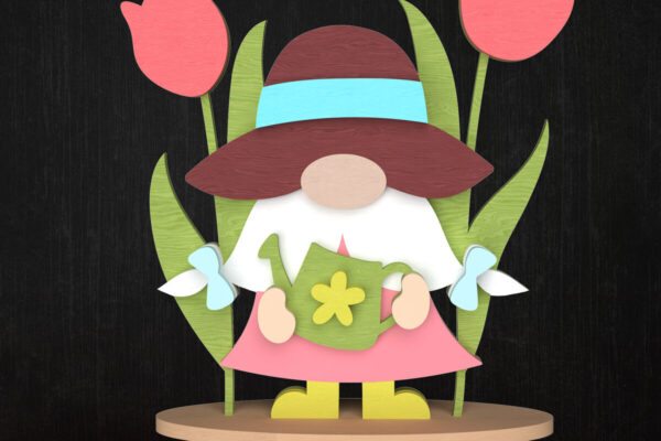 Intra απο ξύλο plywood 3mm-4mm πάχος – Άνοιξη Gnome με διακόσμηση τουλίπας Δίασταση 20×20 cm INTRAFABR-113514039