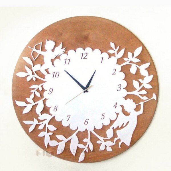 Intra απο ξύλο plywood 3mm-4mm πάχος – Έρως Ρολόι Τοίχου Λουλούδια Άγγελοι Διακόσμηση τοίχου Δίασταση 30×30 cm Intraeaxys-lopq43k7