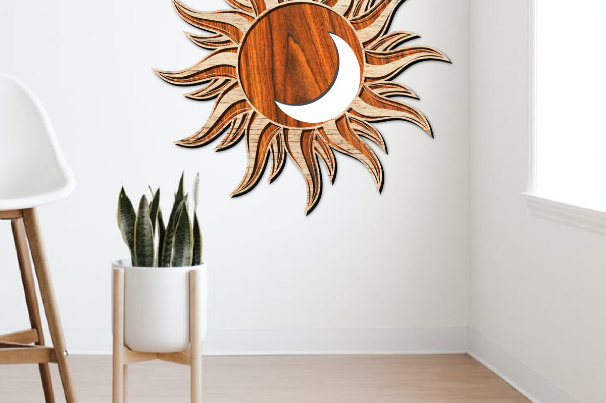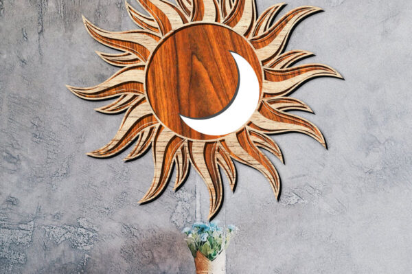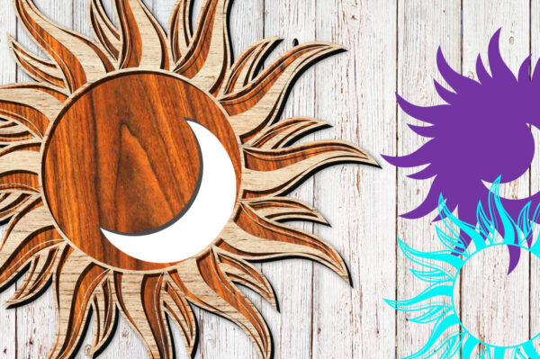 Intra απο ξύλο plywood 3mm-4mm πάχος – Ήλιος με Σελήνη 3D Ξύλινο Δίασταση 20×20 cm INTRAFABR-24190622