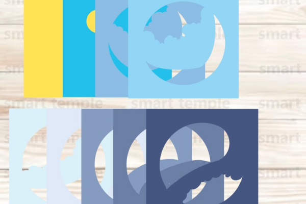 Intra απο ξύλο plywood 3mm-4mm πάχος – Ήλιος Φεγγάρι στο κιβώτιο σκιών σύννεφων Δίασταση 20×20 cm INTRAFABR-76666871