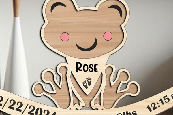 Intra απο ξύλο plywood Χρώμα wenge 3mm-4mm πάχος – Ανακοίνωση Γέννησης Μωρού Βάτραχου Νεογέννητο Δίασταση 20×20 cm INTRAFABR-121409664