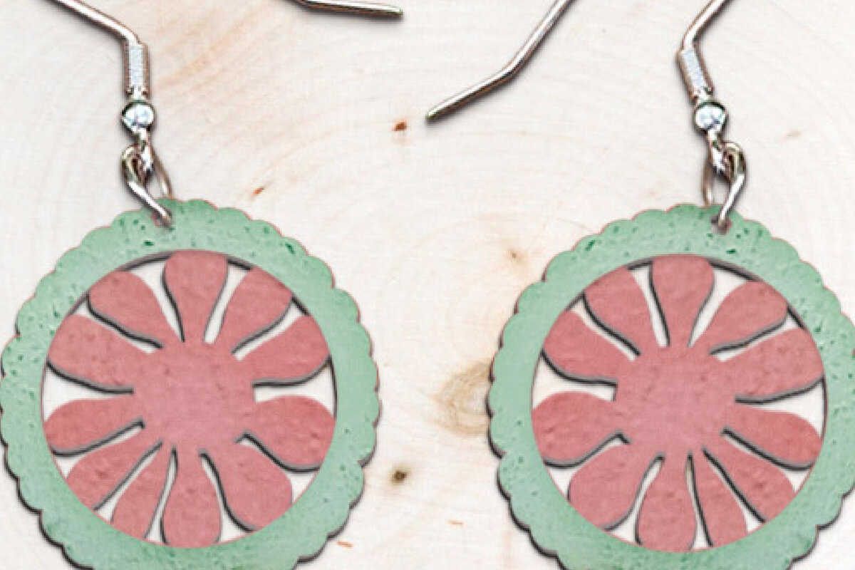 Intra απο ξύλο plywood 3mm-4mm πάχος – Ανοιξιάτικα σκουλαρίκια με λουλούδια με λέιζερ. Δίασταση 5×5 cm INTRAFABR-115397020