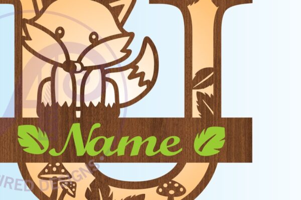 Intra απο ξύλο plywood 3mm-4mm πάχος – αποκοπής μονογράμματος Fox Letter U Δίασταση 30×20 cm INTRAFABR-69924025