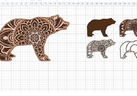 Intra απο ξύλο plywood 3mm-4mm πάχος Αρκούδες, 3 σχέδια, 4 στρώσεις, 3d Mandala Δίασταση 30×30 cm INTRAFABR-31554149