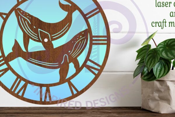Intra απο ξύλο plywood 3mm-4mm πάχος – Αρχεία κοπής με λέιζερ ρολόι τοίχου φάλαινας, Δίασταση 40×30 cm INTRAFABR-94625003