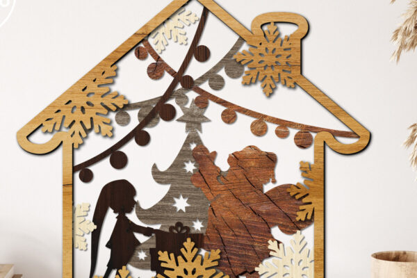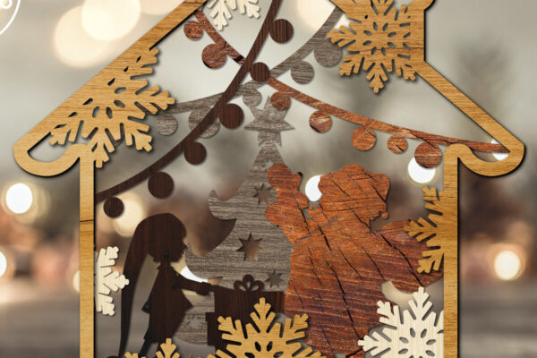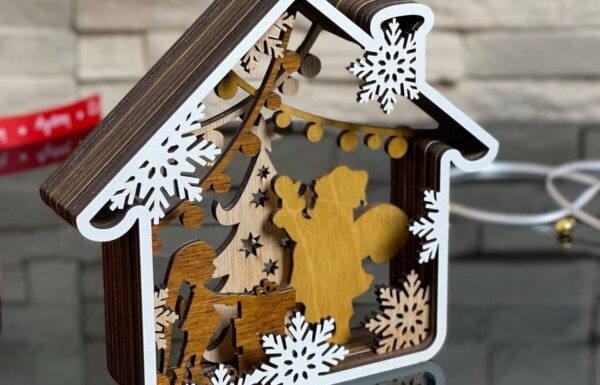 Intra απο ξύλο plywood 3mm-4mm πάχος – Αρχεία κοπής με λέιζερ πολλαπλών στρώσεων WINTER HOUSE Δίασταση 20×20 cm INTRAFABR-22062297