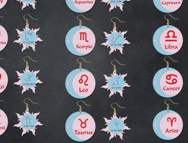 Intra απο ξύλο plywood 3mm-4mm πάχος – Αρχεία κοπής με λέιζερ σκουλαρίκια Zodiac Δίασταση 5×5 cm INTRAFABR-26417027