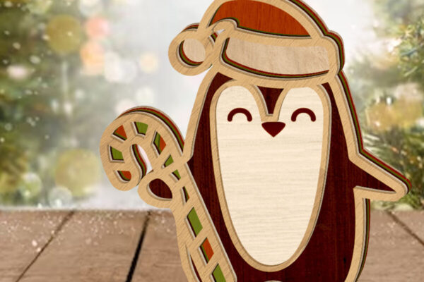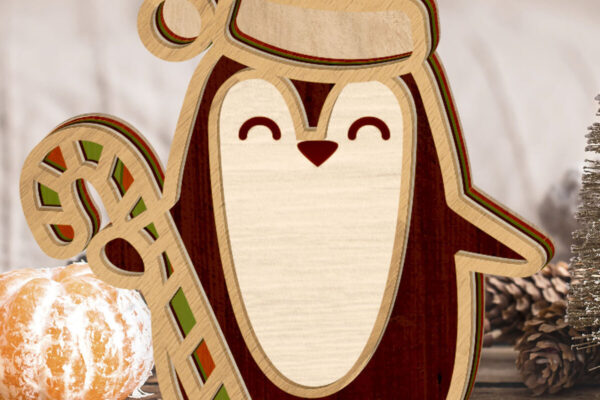 Intra απο ξύλο plywood 3mm-4mm πάχος – Αρχεία κοπής πολλαπλών επιπέδων PENGUIN CHRISTMAS Δίασταση 20×20 cm INTRAFABR-81666661