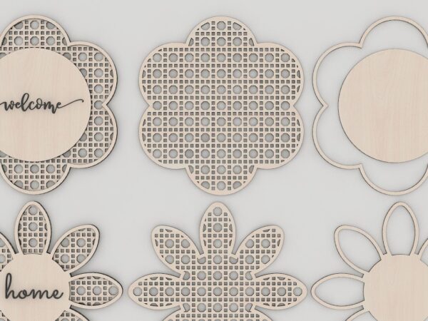 Intra απο ξύλο plywood 3mm-4mm πάχος – Αρχεία λέιζερ με μοτίβο Rattan Flower Daisy Δίασταση 20×20 cm INTRAFABR-41625884