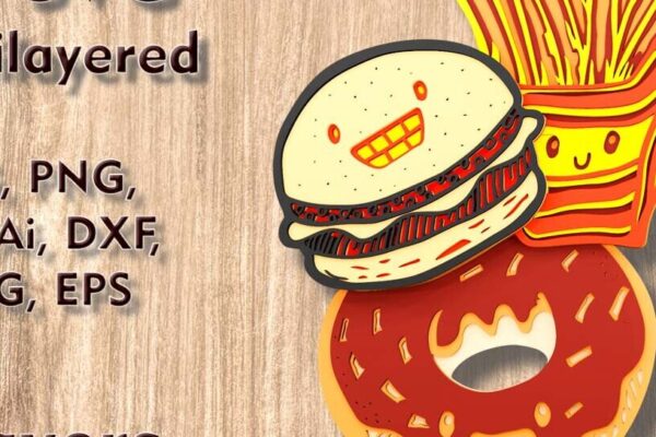 Intra απο ξύλο plywood 3mm-4mm πάχος – Αρχεία λέιζερ πολλαπλών επιπέδων Fast Food 3D Δίασταση 4×8 cm INTRAFABR-109512131