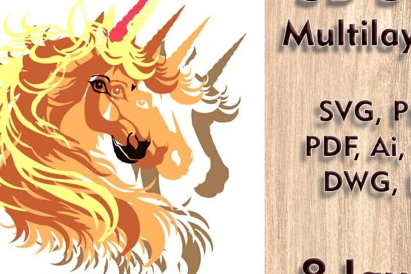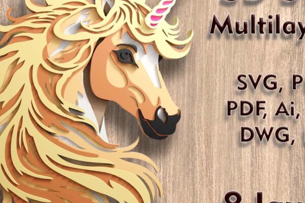 Intra απο ξύλο plywood 3mm-4mm πάχος – Αρχεία λέιζερ πολλαπλών επιπέδων Unicorn 3D Δίασταση 20×20 cm INTRAFABR-109079248