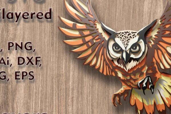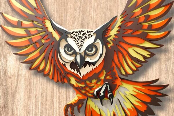 Intra απο ξύλο plywood 3mm-4mm πάχος – Αρχεία λέιζερ πολλαπλών επιπέδων κουκουβάγιας 3D Δίασταση 20×20 cm INTRAFABR-109001365