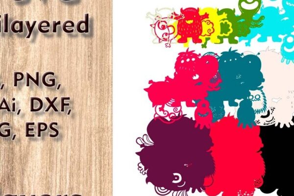 Intra απο ξύλο plywood Χρώμα wenge 3mm-4mm πάχος – Αρχεία πολλαπλών επιπέδων 3D Cute Monsters Δίασταση 4×9 cm INTRAFABR-65343056