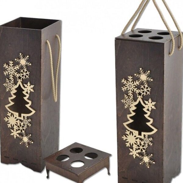 Intra απο ξύλο plywood 3mm-4mm πάχος – ξύλο δώρου Χριστουγεννιάτικου μπουκαλιού κρασιού 25×25 cm INTRAVECTRY-MY558869