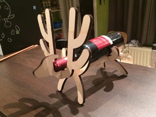 Intra απο ξύλο plywood 3mm-4mm πάχος – ξύλο θήκης φιάλης κρασιού με ένα ζώο ελάφι 20×25 cm INTRAVECTRY-MY542511