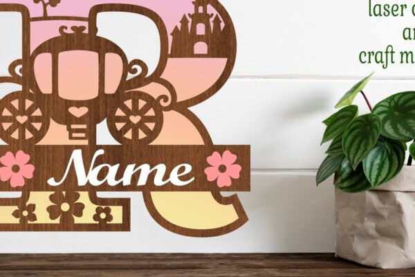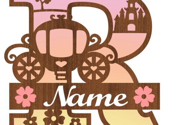 Intra απο ξύλο plywood 3mm-4mm πάχος – Αρχείο κομμένου γράμματος Princess Monogram Letter R Δίασταση 20×20 cm INTRAFABR-76568254
