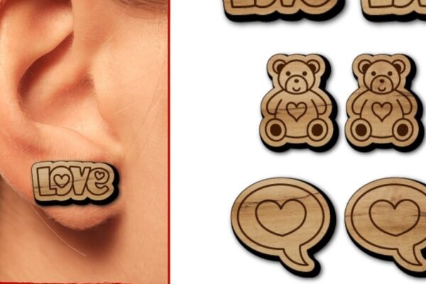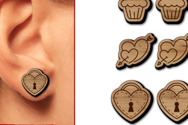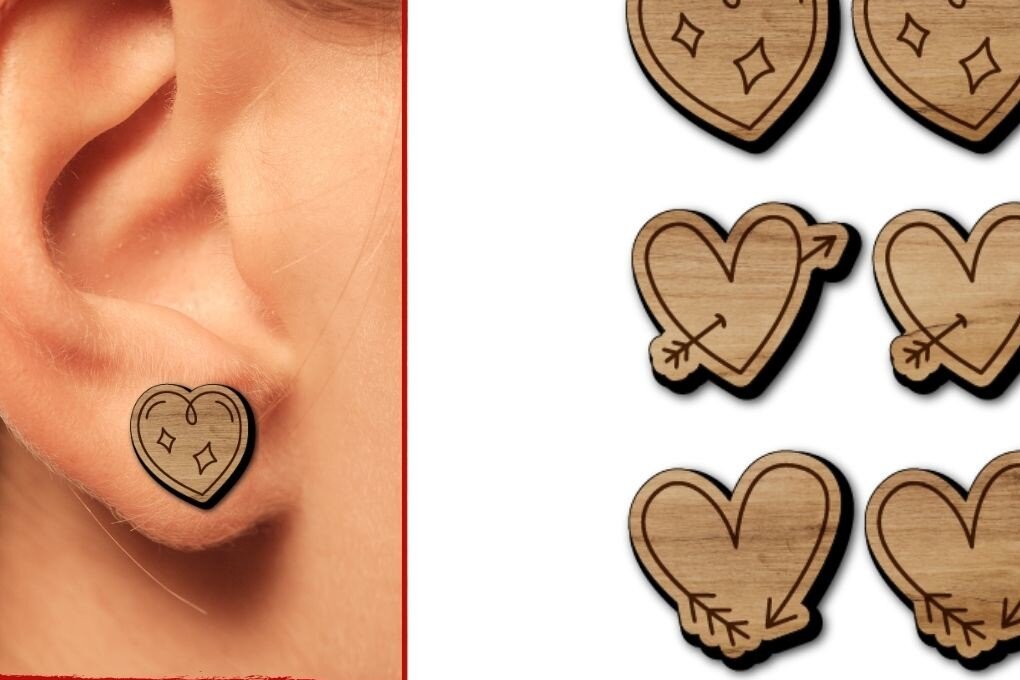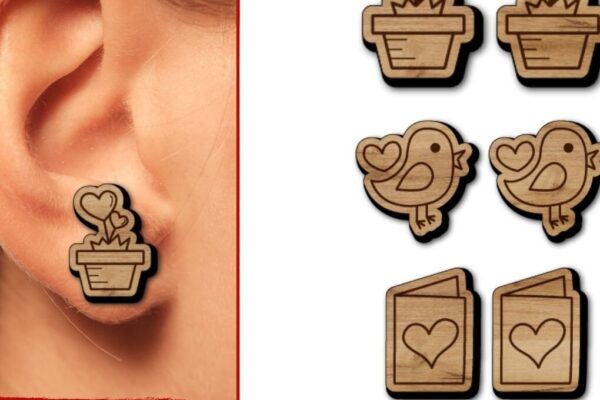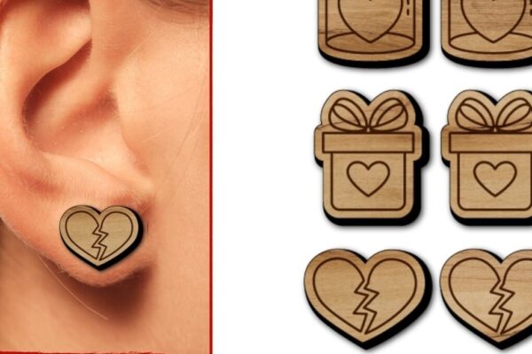 Intra απο ξύλο plywood 3mm-4mm πάχος – Αρχείο κοπής με λέιζερ σκουλαρίκια για την ημέρα του Αγίου Βαλεντίνου Δίασταση 5×5 cm INTRAFABR-55746266