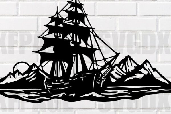 Intra απο ξύλο plywood 3mm-4mm πάχος – Αρχείο κοπής με λέιζερ Pirate Ship at Sea Δίασταση 20×20 cm INTRAFABR-115222649