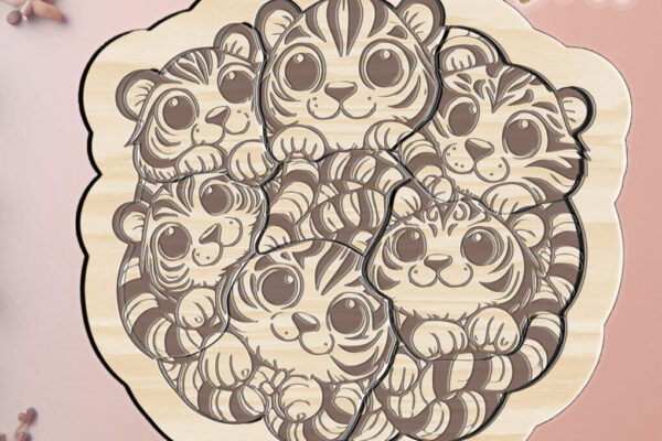 Intra απο ξύλο plywood 3mm-4mm πάχος – Αρχείο κοπής με λέιζερ για παιδιά Tiger Puzzle Δίασταση 20×20 cm INTRAFABR-107631662