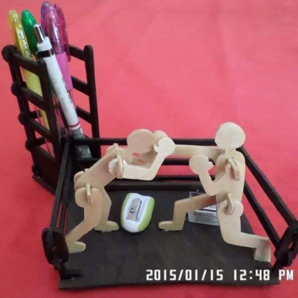 Intra απο ξύλο plywood 3mm-4mm πάχος – ξύλο μολυβοθήκης με ξύλινο στυλό με θέμα την πυγμαχία 20×20 cm INTRAVECTRY-MY559434