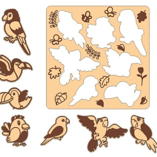 Intra απο ξύλο plywood 3mm-4mm πάχος – ξύλο Ξύλινου Παιχνιδιού παζλ με θέμα τα πουλιά 15×20 cm INTRAVECTRY-MY561391
