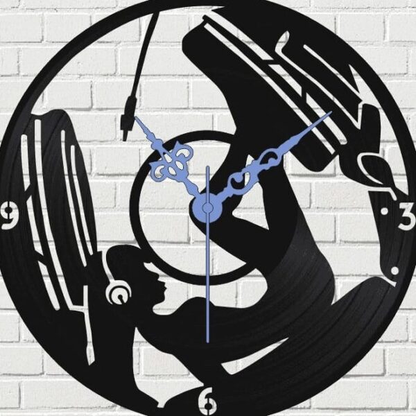 Intra απο ξύλο plywood 3mm-4mm πάχος – ξύλο ρολογιού τοίχου με δίσκους βινυλίου για το κορίτσι με ακουστικά 15×15 cm INTRAVECTRY-MY561121