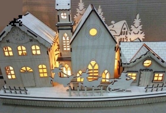 Intra απο ξύλο plywood 3mm-4mm πάχος – ξύλο Σκηνής Χωριού Φωτισμένα Χριστουγεννιάτικα Σπίτια 45×50 cm INTRAVECTRY-MY547944