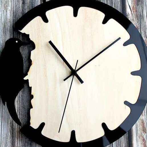 Intra απο ξύλο plywood 3mm-4mm πάχος – ξύλο στρογγυλού ρολογιού τοίχου Woodpecker 25×25 cm INTRAVECTRY-MY555737