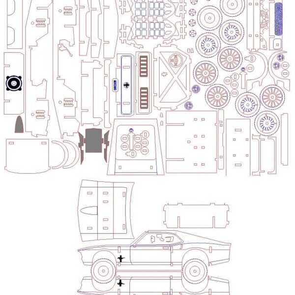 Intra απο ξύλο plywood 3mm-4mm πάχος – ξύλο Ford Mustang Car 3D Ξύλινο Μοντέλο 30×35 cm INTRAVECTRY-MY554876