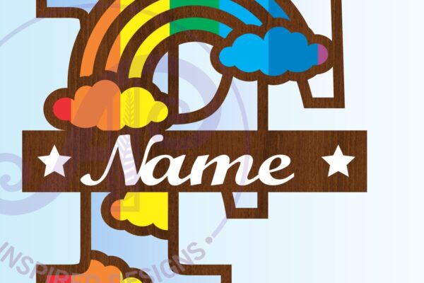 Intra απο ξύλο plywood 3mm-4mm πάχος – Αρχείο Rainbow Monogram Letter F Δίασταση 20×20 cm INTRAFABR-70085639