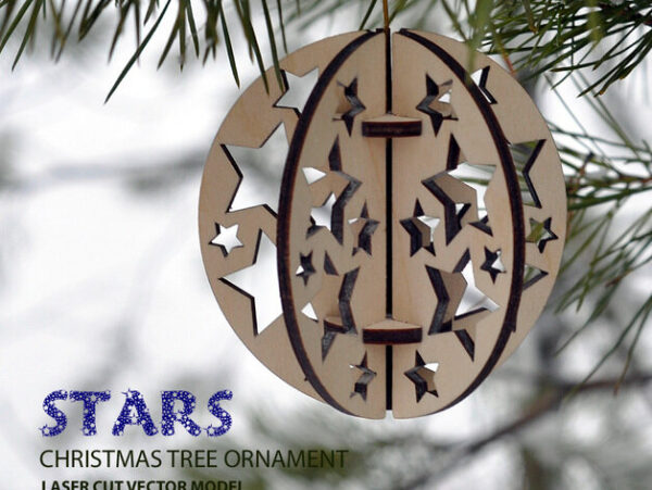 Intra απο ξύλο plywood 3mm-4mm πάχος – αστέρια. Χριστουγεννιάτικο δέντρο στολίδι μπάλα Δίασταση 10×10 cm Intraeaxys-joe45816