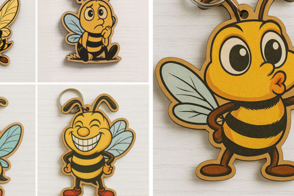 Intra απο ξύλο plywood 3mm-4mm πάχος – Αστεία δέσμη μπρελόκ μελισσών Δίασταση 4×4 cm INTRAFABR-122220452