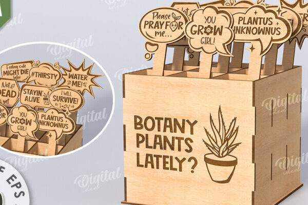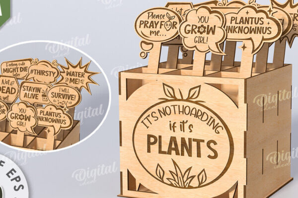 Intra απο ξύλο plywood 3mm-4mm πάχος – Αστεία φυτά μαρκαδόροι με κουτί Δίασταση 30×20 cm INTRAFABR-116899003