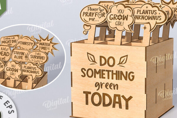 Intra απο ξύλο plywood 3mm-4mm πάχος – Αστεία φυτά μαρκαδόροι με κουτί Δίασταση 30×20 cm INTRAFABR-116814945