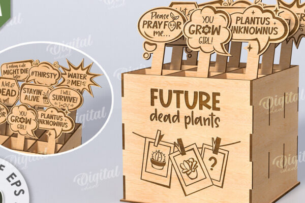 Intra απο ξύλο plywood 3mm-4mm πάχος – Αστεία φυτά μαρκαδόροι με κουτί Δίασταση 30×20 cm INTRAFABR-116816770